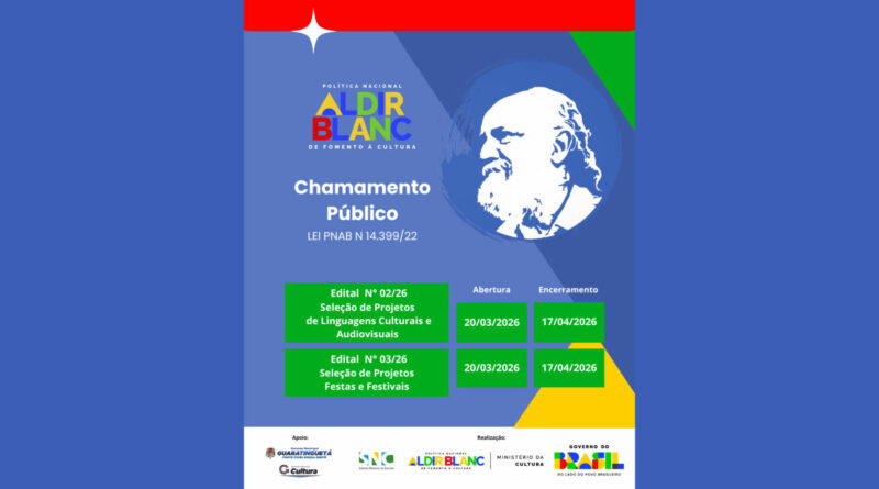 A Prefeitura de Guaratinguetá, por intermédio da Secretaria Municipal de Cultura, anunciou a abertura de dois editais destinados à seleção de projetos culturais. Essa ação é financiada pela Política Nacional Aldir Blanc de Fomento à Cultura (PNAB). As inscrições estão disponíveis a partir de hoje, 20 de março, e ficarão abertas até o dia 17 de abril de 2026.