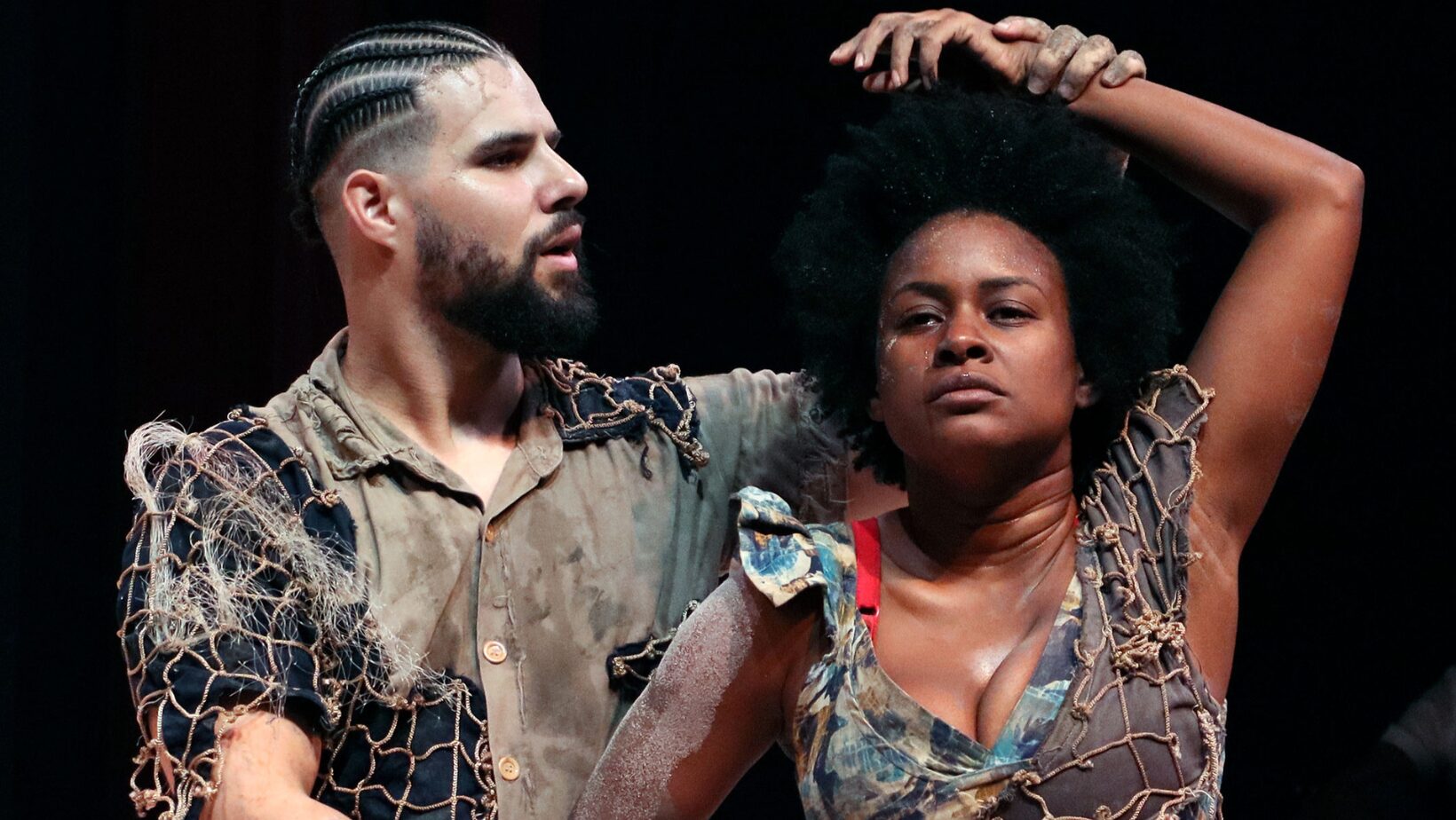 A proposta estética do espetáculo se inspira no universo simbólico e material dos marisqueiros do subúrbio soteropolitano. Elementos como areia, lama, baldes e redes de pesca compõem o cenário, criando um ambiente que é ao mesmo tempo cru, ritualístico e expressivo. Neste espaço, o drama é explorado através de uma luta visceral, que envolve corpo e território. Ao ambientar a obra em Plataforma, a montagem reafirma a força da dramaturgia brasileira, ao se entrelaçar com realidades concretas e populares, além de oferecer uma leitura racializada da cena.